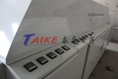 產(chǎn)品系列:回流焊 產(chǎn)品型號(hào):TH-5型 一、技術(shù)參數(shù) 1、網(wǎng)帶寬度:400 毫米 2、長(zhǎng)×寬×高:3800×1400×1350毫米 3、傳送速度:0.2~1米/分鐘 4、加熱方式:熱風(fēng)循環(huán)、不銹鋼電加熱器件 5、溫區(qū)與熱風(fēng)數(shù)量:5 6、控制方式:PID自動(dòng)控制 7、預(yù)熱時(shí)間:約25分鐘 8、總功率:3ф380V,24KW 9、空載功率:約6.5 KW 10、膽開啟方式:雙氣缸自動(dòng) 11、控溫精度:第五溫區(qū)(焊接區(qū)): ±2℃ 第一至第四溫區(qū): ±3℃ 12、傳送方式:網(wǎng)帶 + 鏈條 13、凈重:約1000公斤 二、設(shè)備配置 1、機(jī)架材料采用冷軋鋼板 2、內(nèi)膽采用不銹鋼材,耐腐蝕易清理 3、發(fā)熱器采用不銹鋼電加熱器件和強(qiáng)制熱風(fēng)對(duì)流,風(fēng)速可調(diào) 4、網(wǎng)帶選用不銹鋼網(wǎng)帶 |